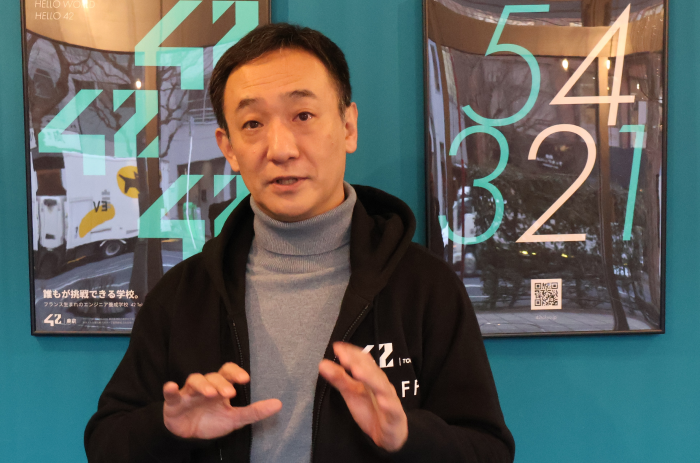 42はエンジニアを養成する専門機関としてフランスで発足。現在は31か国に展開している。その一つである「42 Tokyo」は2020年に開講し、現在は東京・新宿の東京都庁近くに校舎を構える。その理念は、エンジニア不足への貢献と、日本を含めて世界的な課題になっている経済的理由などによる教育機会の格差是正だ。このため、学生は学歴・経歴不問、無料で学ぶことができ、運営費は理念に共感するトヨタ自動車をはじめスポンサーが拠出している。特徴として、校舎は365日24時間開放し、教科書や「先生」を置かず、仲間たちと切磋琢磨することで企業の第一線で働くエンジニアに必須なコミュニケーション力、そして一生にわたる学ぶことへの意欲を徹底的に根付かせている。